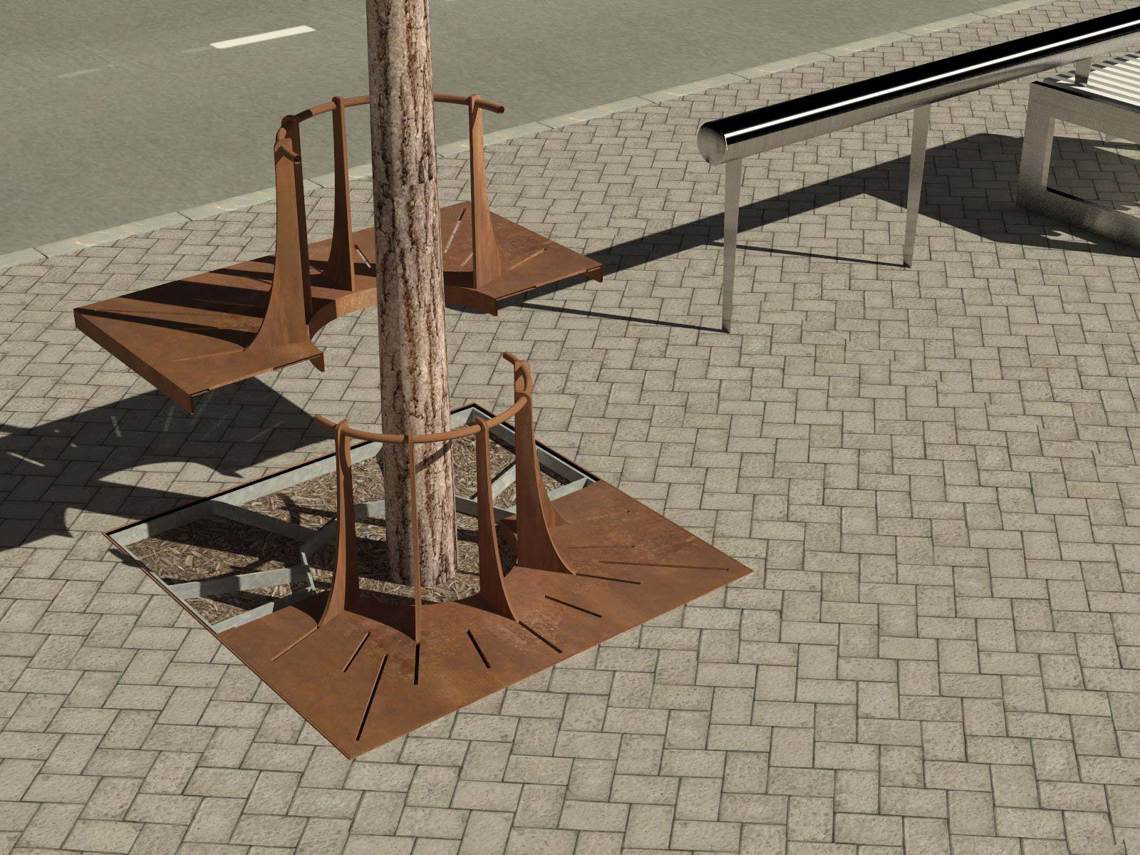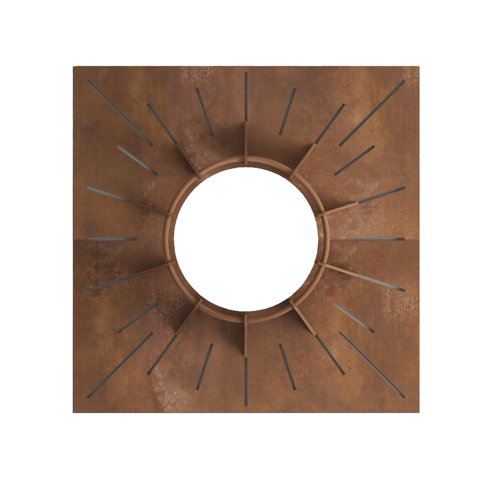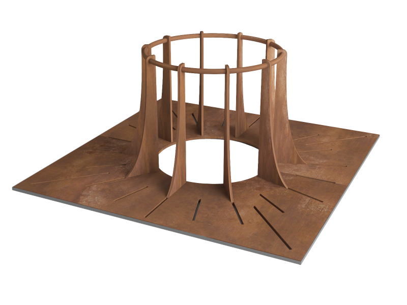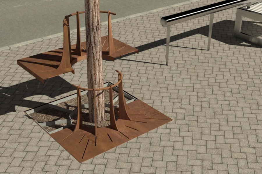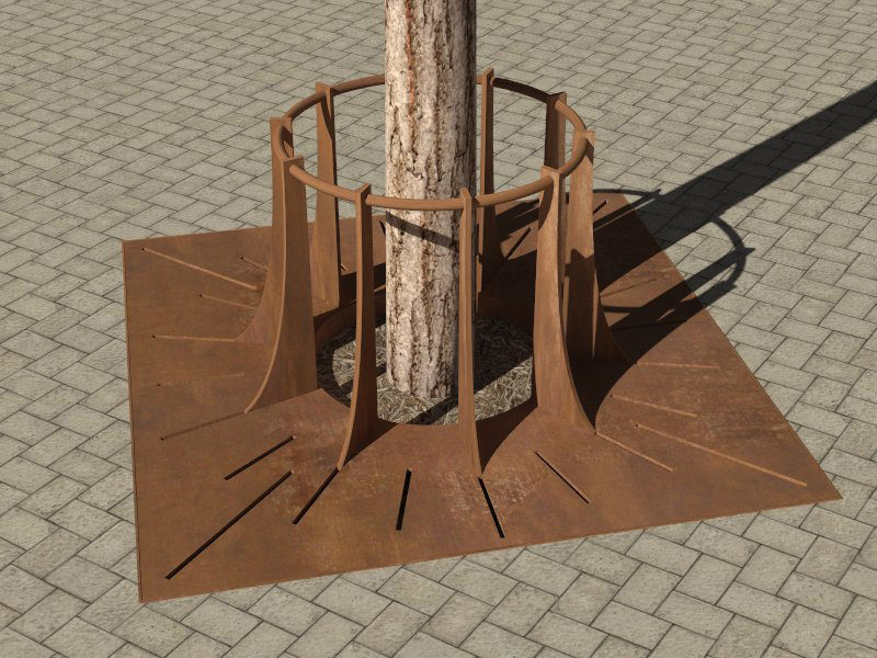 Ascension es un alcorque protector de árbol construido integramente en acero corten que le confiere una gran calidad y solidez al conjunto, así como larga duración.